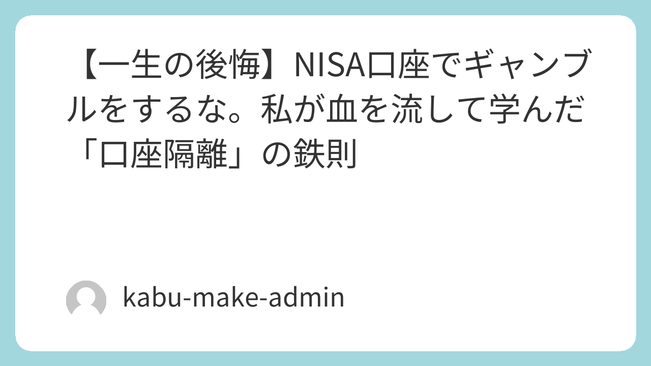 NISA口座という聖域を、ギャンブルの火種で汚してはいけません。