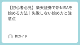 ▶ 【初心者必見】楽天証券で新NISAを始める方法|失敗しない始め方と注意点