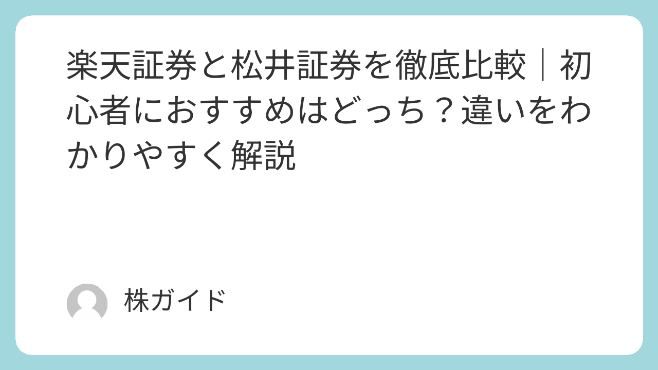 「楽天証券と松井証券、どっちを選べばいいのかわからない…」
