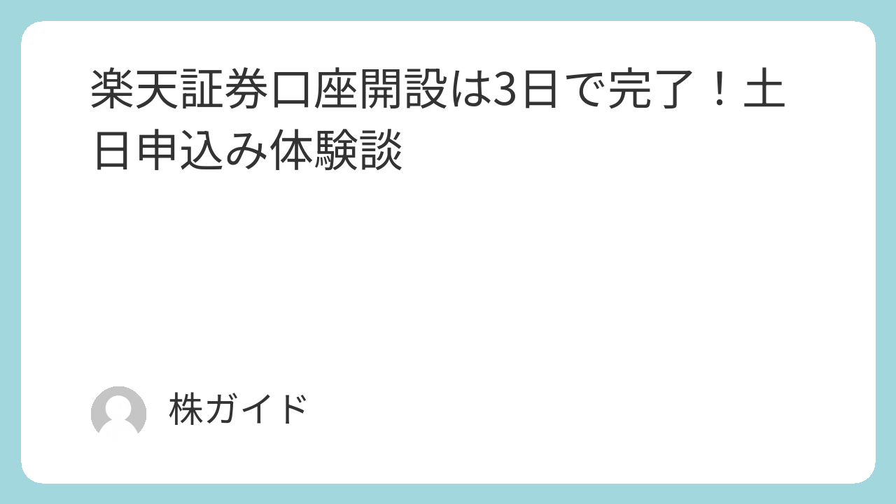 しかし今回、楽天証券で申し込んでみたところ、土曜日に申込みをして火曜日には口座開設が完了。想像より早く開設できました。